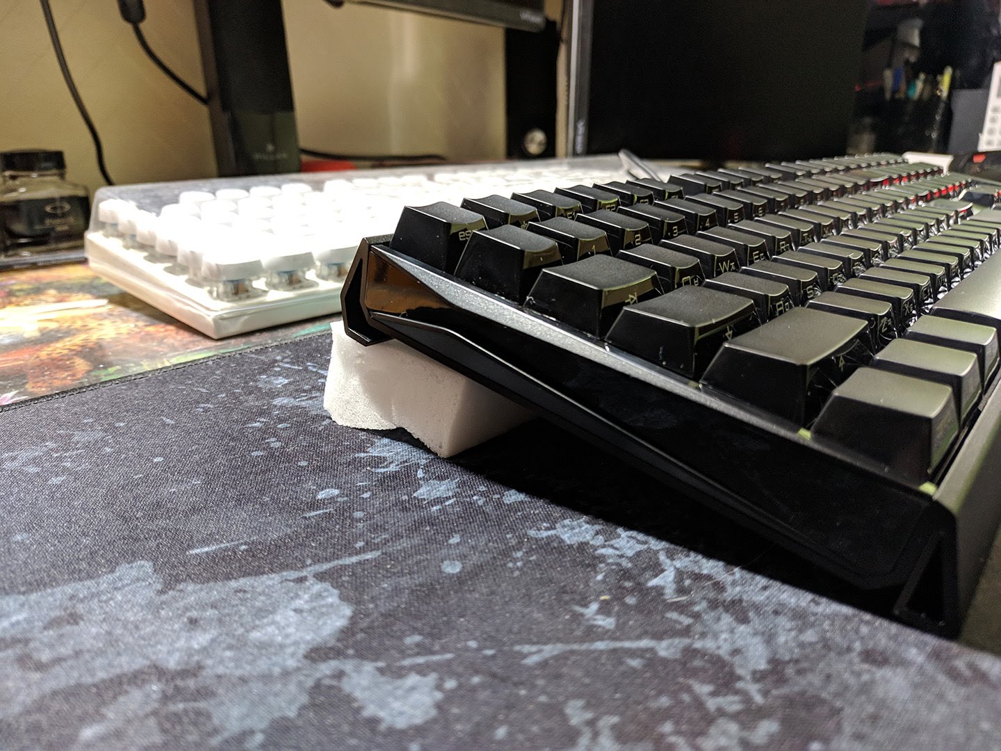 이렇게 부엌용 스펀지 잘라다가 키보드 아래에 놓으면 가능합니다.