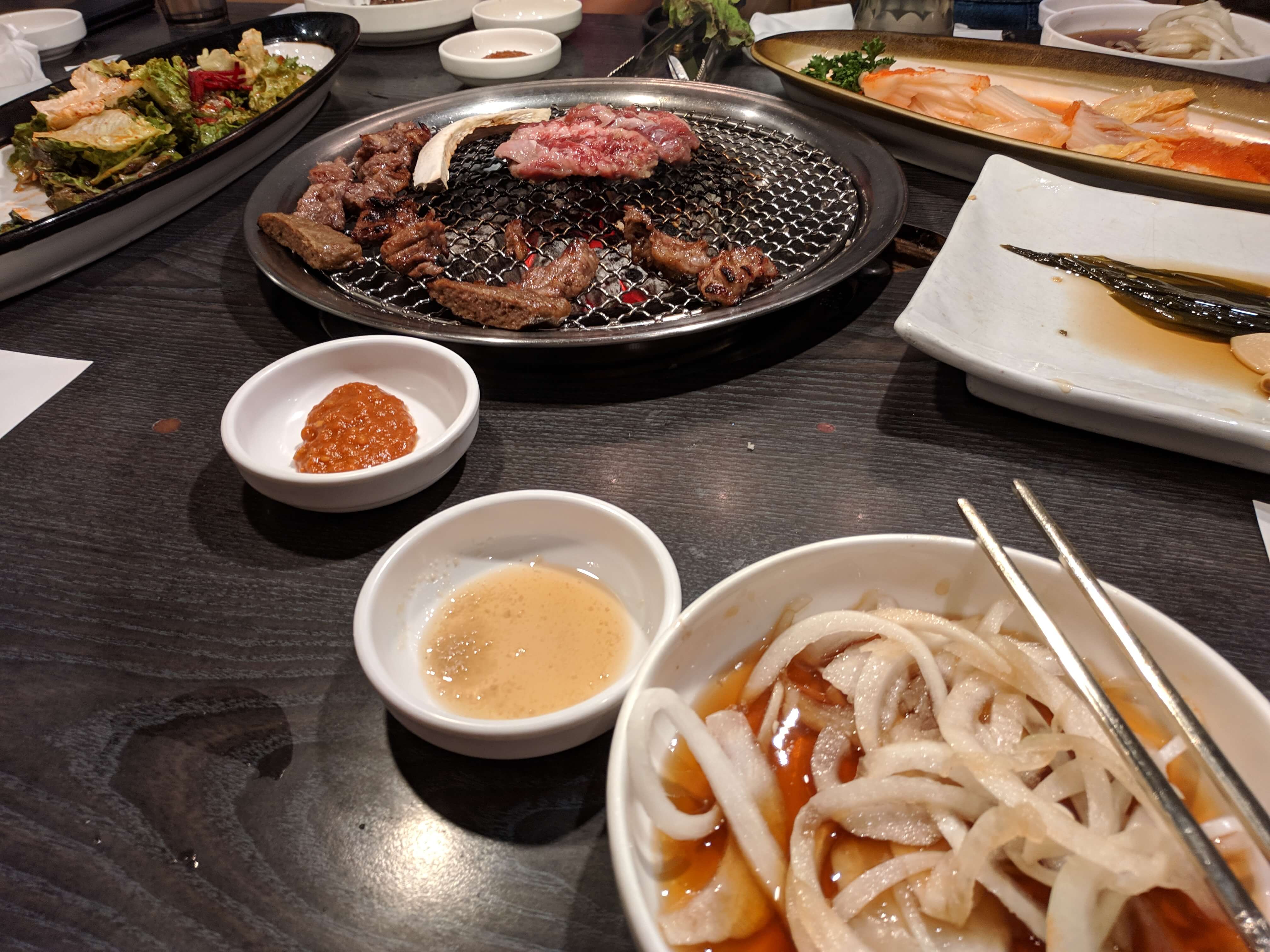 고기 시키면 주는 떡갈비는 맛이 좀 이상한데, 고기는 먹을만하다.