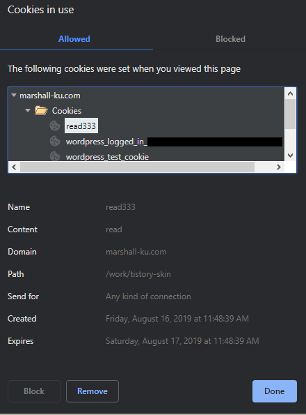 간혹 head 태그 내부에 해당 코드를 넣은 위치에 따라 쿠키를 생성 못 하기도 하던데, 계속 안 되면 title 태그 바로 아래에 붙여 넣으시면 쿠키가 생성될 겁니다.