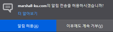 아이콘을 클릭하시면 브라우저가 알림 전송 권한을 허용할지 물어볼 겁니다.